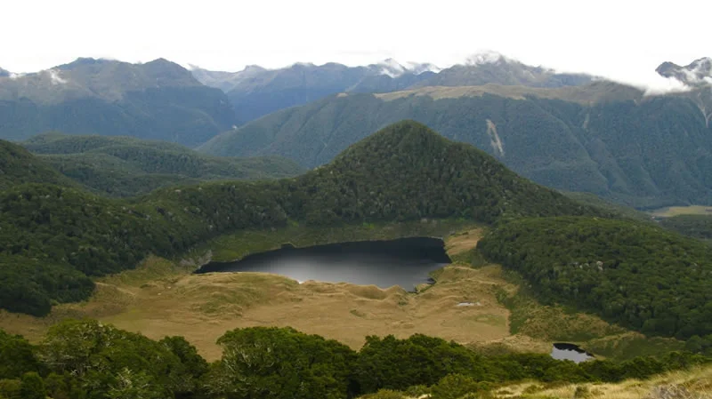 Geologists believe that a 14km high volcano originating far to the north of New Zealand was swallowed in the great upheavals that shaped the Earth and emerged here tipped on its side. The Takitimu Range is the eroded remnant of this colossus.